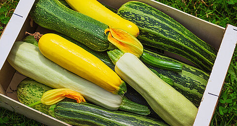 Bên cạnh những quả bí màu xanh lá cây, còn có những giống màu trắng, vàng và xanh nhạt, cũng như những loại màu xanh lá cây có đốm hoặc sọc. Tại HiPP, chúng tôi trồng các giống Black Beauty, Preciosa, Girit và Cora được lựa chọn cẩn thận và kiểm soát chặt chẽ.